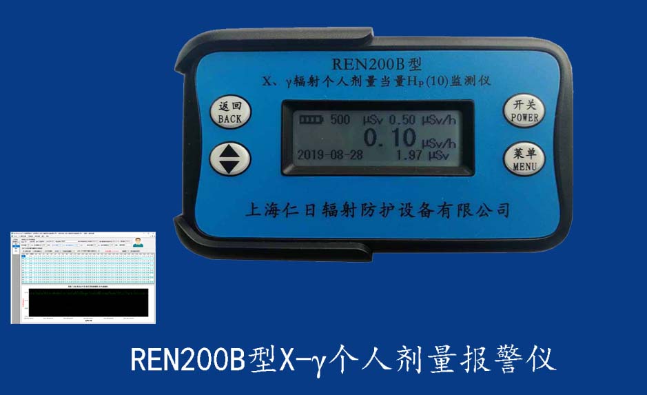 REN200型X、γ個人劑量報警儀(又叫X、γ輻射個人劑量當(dāng)量HP(10)監(jiān)測儀)內(nèi)置高靈敏度蓋格計數(shù)管為探測器,主要用來監(jiān)測各種放射性工作場所的X、γ以及硬β射線的輻射,具有響應(yīng)快,測量范圍寬的特點。能顯示工作場所的劑量當(dāng)量率和累積劑量,更換電池時,日期及累積數(shù)據(jù)能永久保存。可選配RenRiPersonal個人劑量管理軟件,該軟件可存儲多個人的歷史數(shù)據(jù),能記錄日累積、月累積、年累積、輻照時長、計算平均劑量率、扣除或不扣除本底輻射,且以文字和圖譜的方式展現(xiàn)數(shù)據(jù)。廣泛應(yīng)用于核電站、加速器、鋼鐵、化工、同位素應(yīng)用、醫(yī)院、工業(yè)X、γ無損探傷、放射醫(yī)療、鈷源治療、γ輻照、放射性實驗室、核設(shè)施周圍環(huán)境監(jiān)測